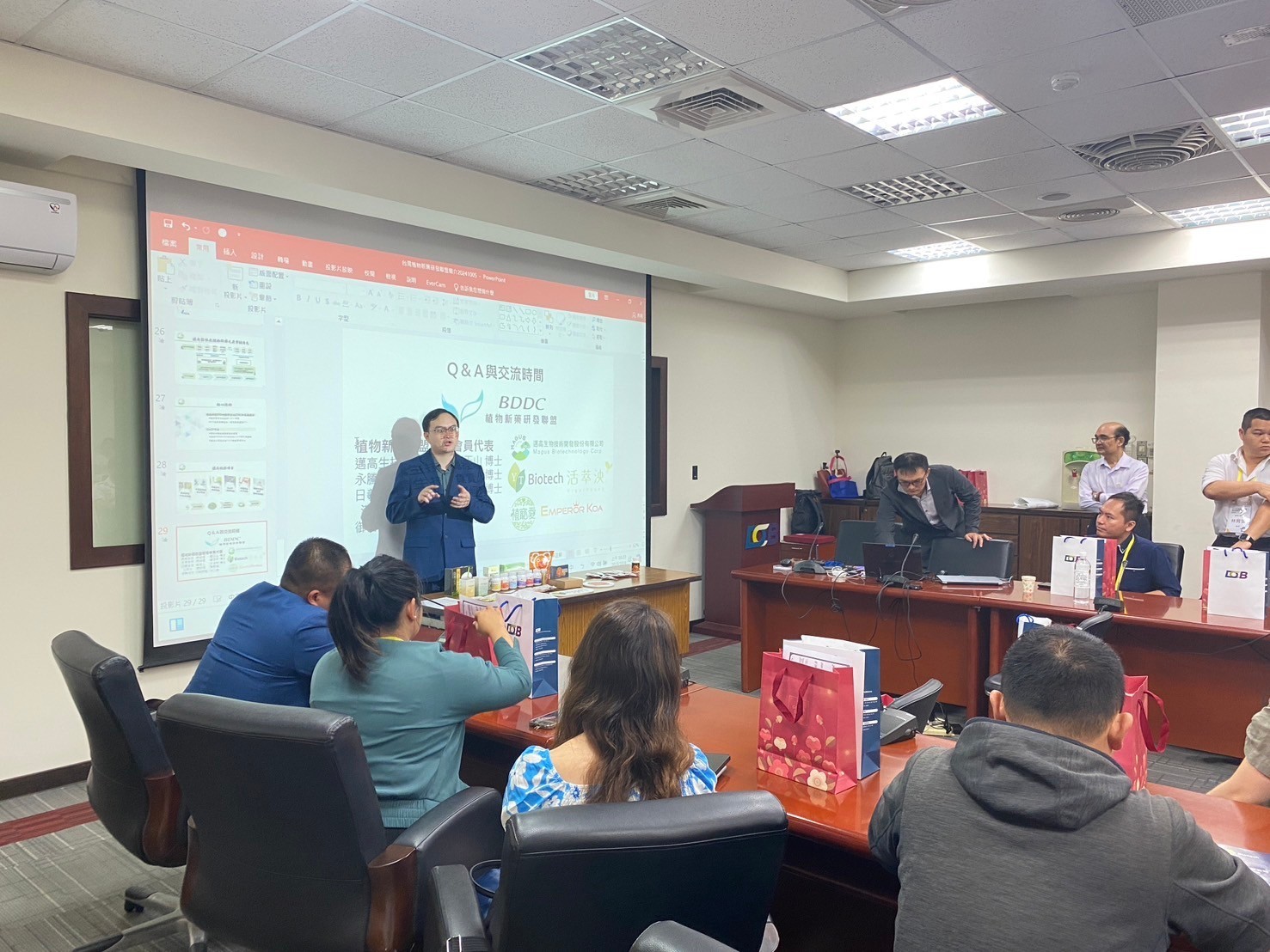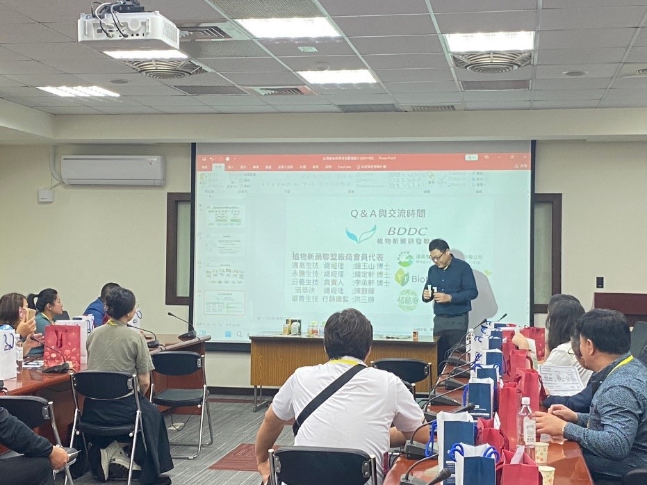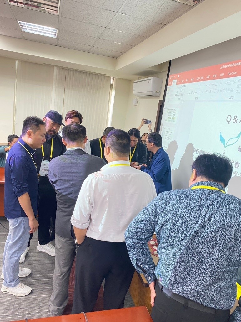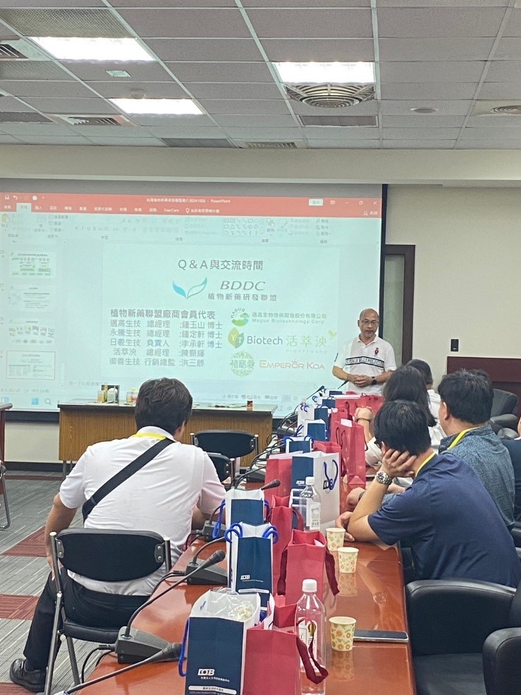 2024年10月4日參訪團到達生技園區,台灣植物新藥研發協會理事長暨邁高生技總經理鍾玉山博士、永騰生技總經理鐘定軒博士、活萃泱陳顥輝總經理及日羲生技負責人李承翰博士、御善生技洪三勝總監發表演講與學員分享經驗……