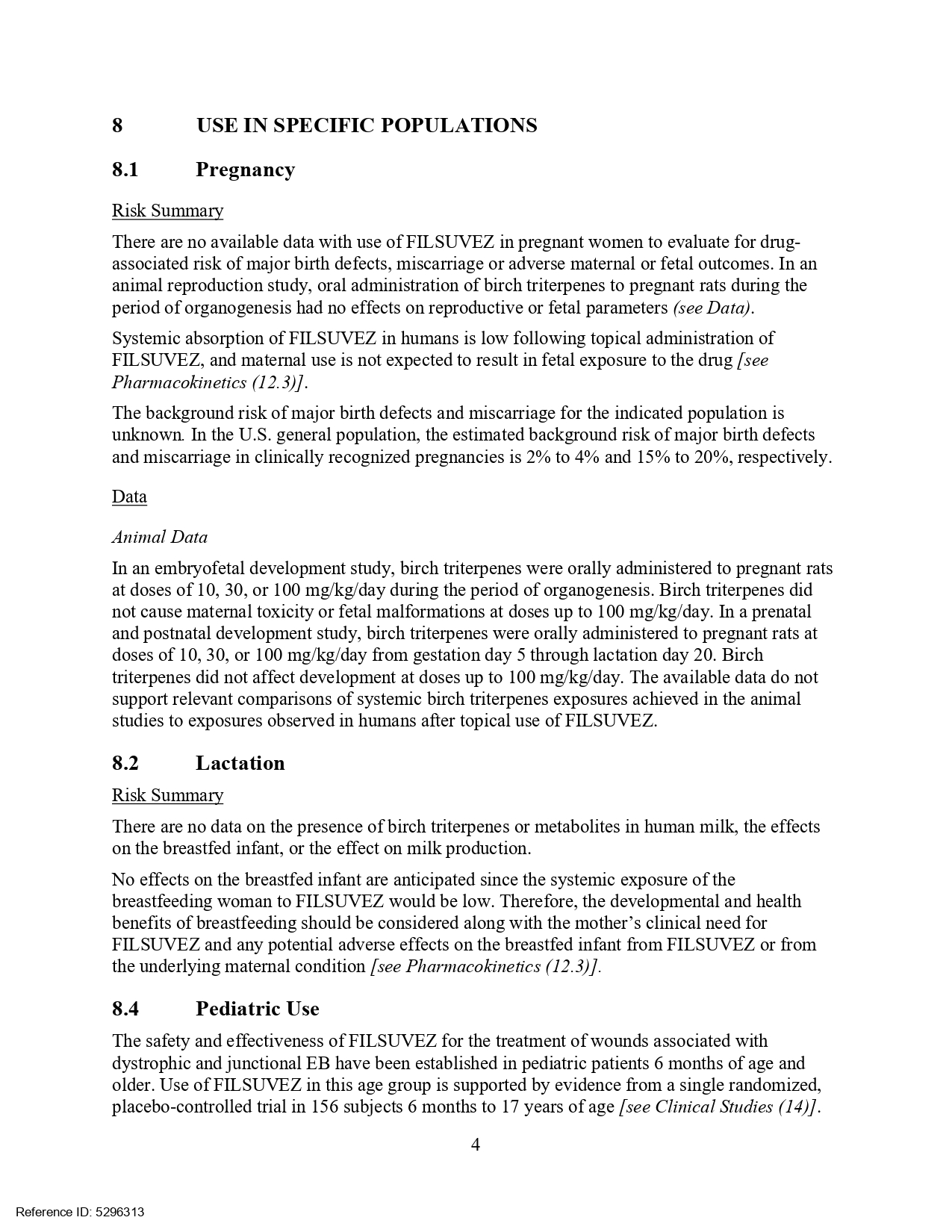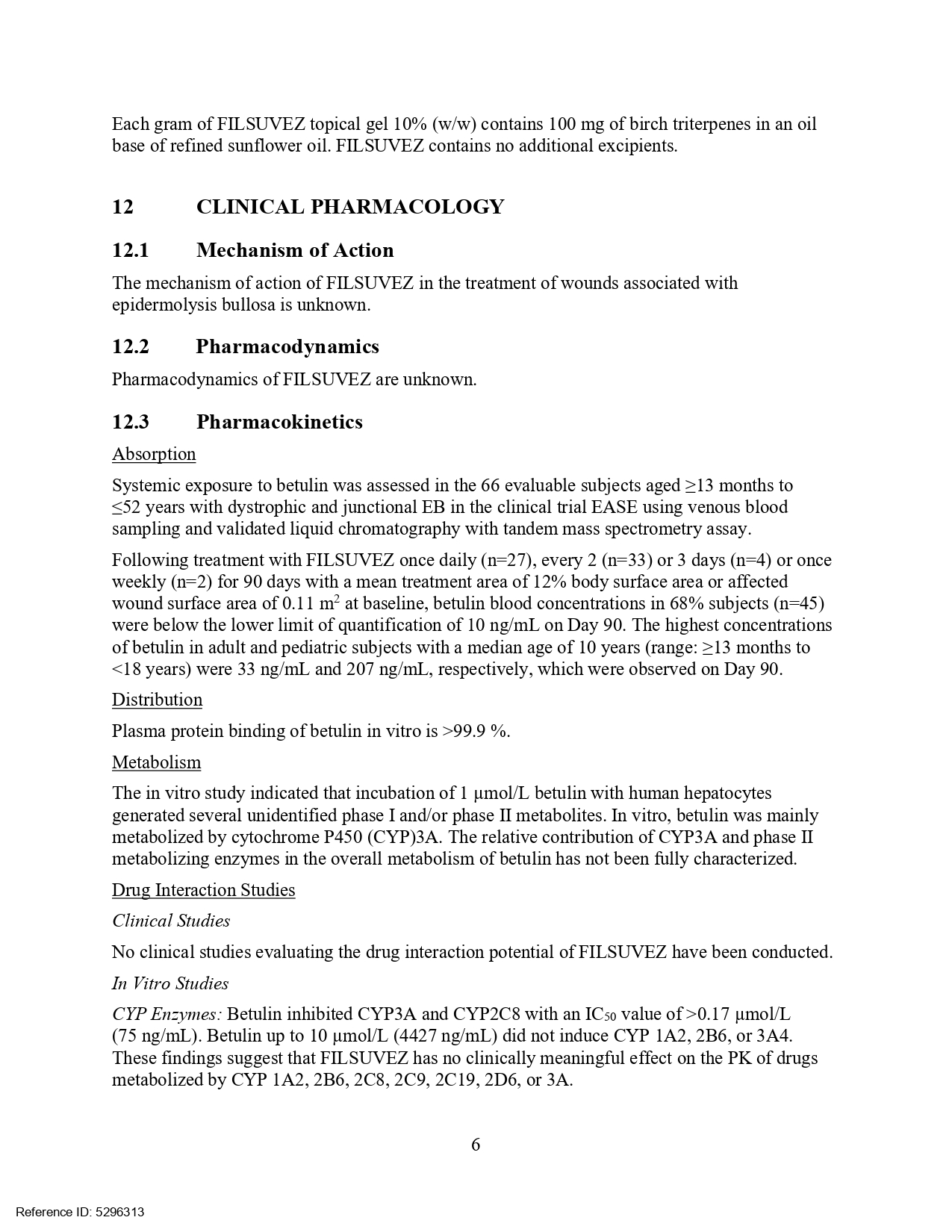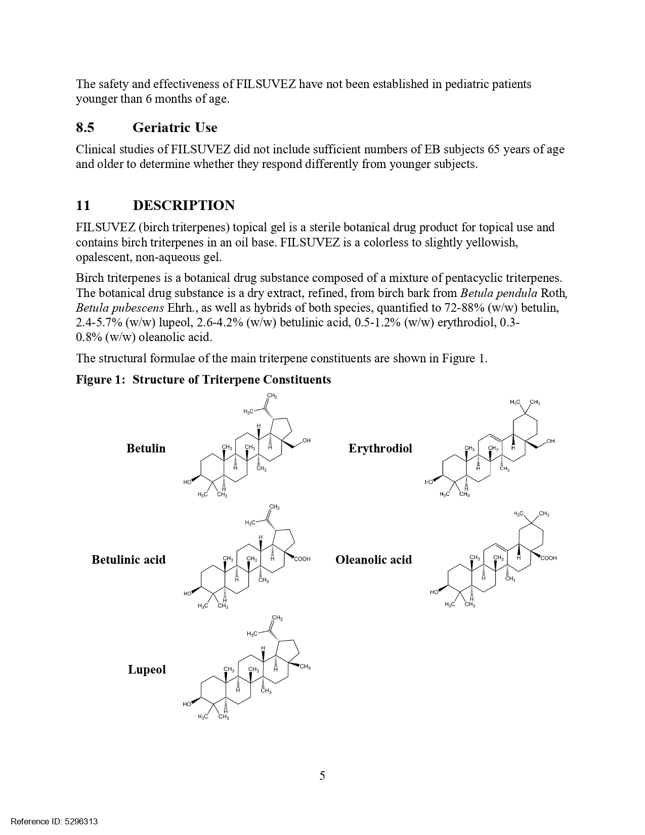 USFDA於2023年12月核准第三個植物新藥Filsuvez(10%樺木三萜w/w),屬於Chiesi藥業。主成分為樺木三萜(Birch triterpenes,其中betulin 佔72-88%),提取自垂枝樺Betula pendula Roth, 及毛樺B. pubescens Ehrh.樹皮並經進一步精製而成。劑型為局部外用凝膠。適用於治療成人和6個月及以上兒科患者,接合型及營養失養型遺傳性表皮分解性水泡症相關的傷口。遺傳性表皮分解性水泡症為罕見遺傳性疾病。