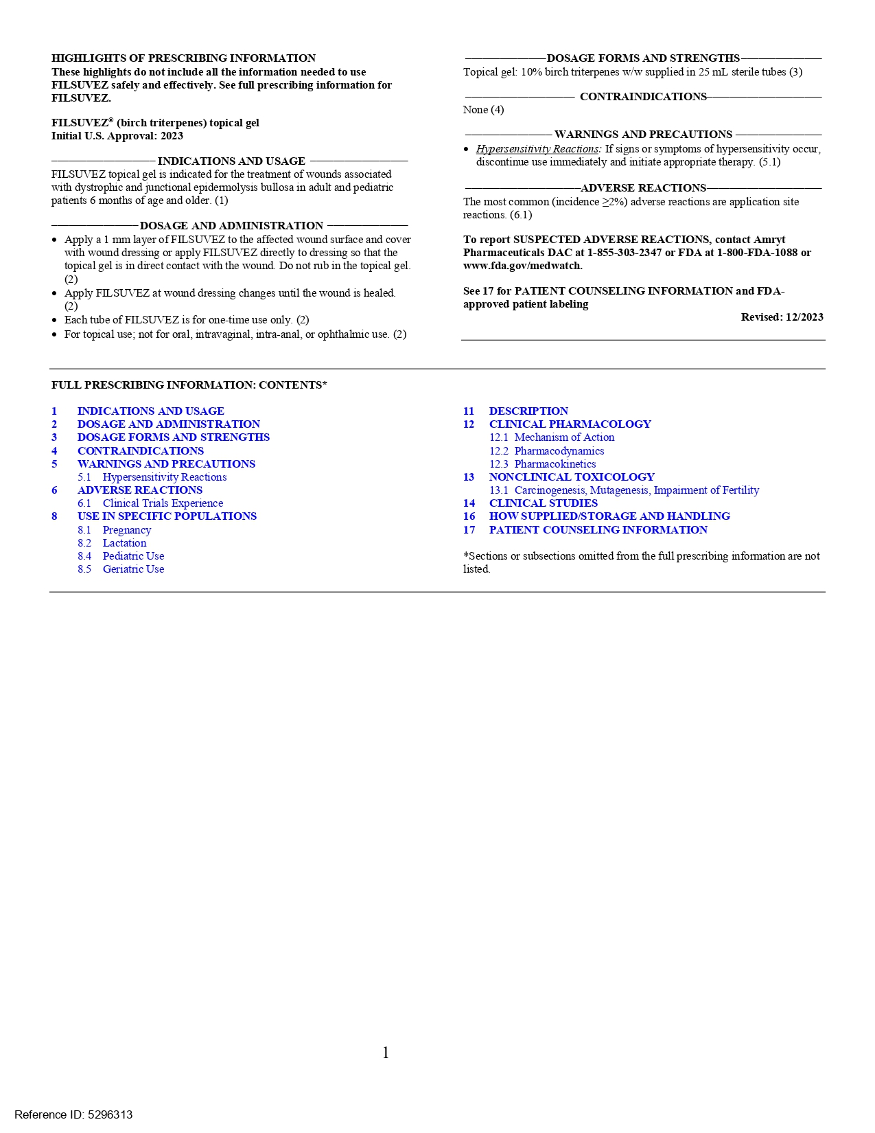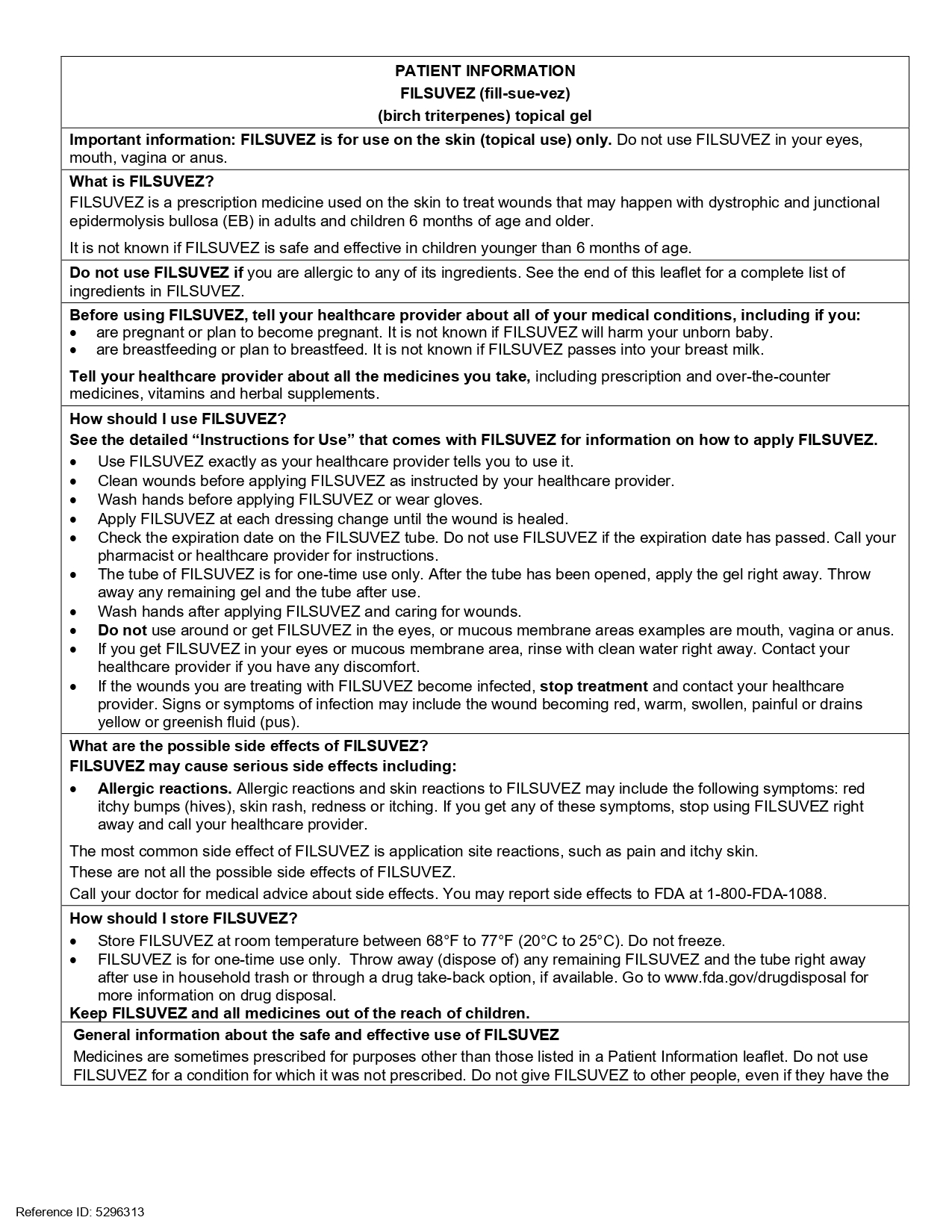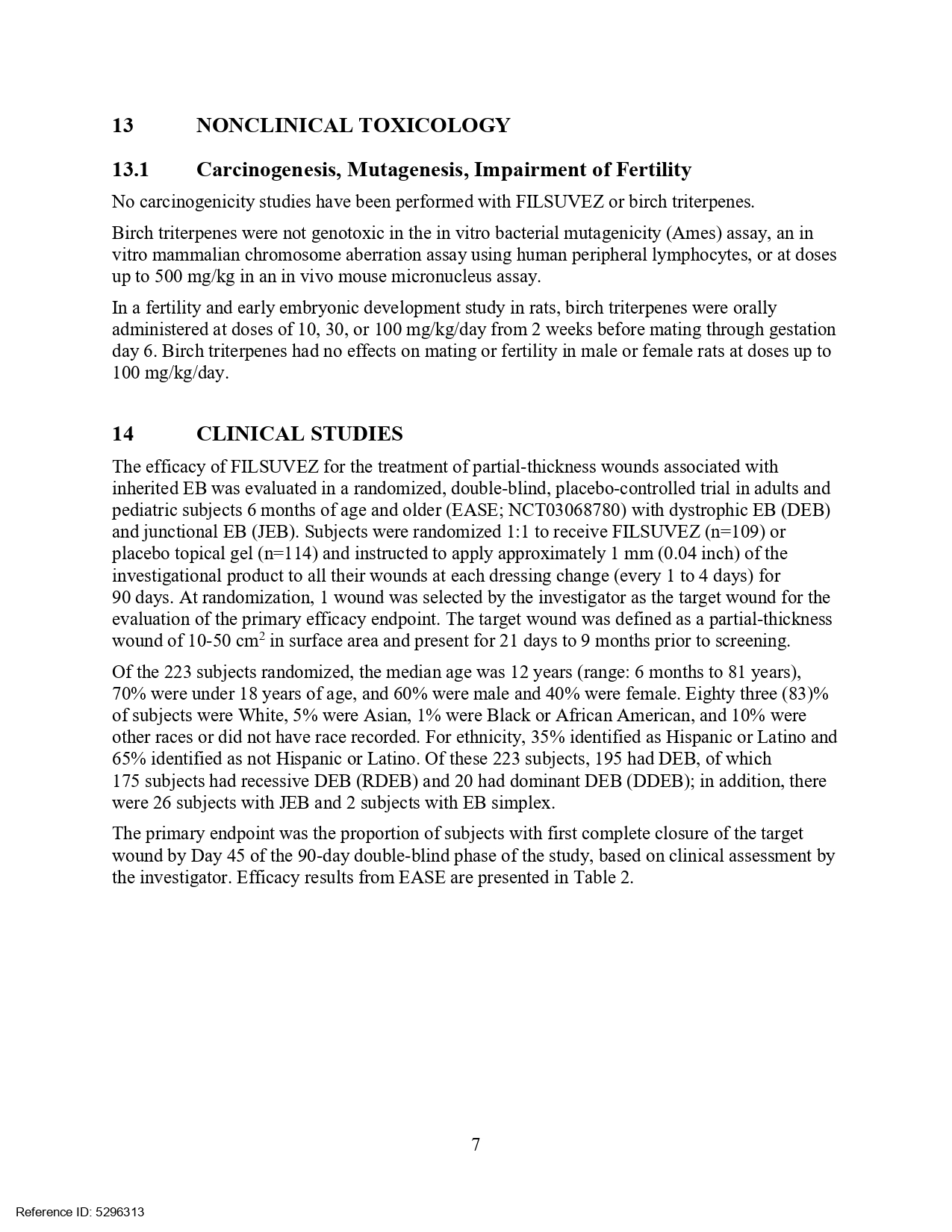 USFDA於2023年12月核准第三個植物新藥Filsuvez(10%樺木三萜w/w),屬於Chiesi藥業。主成分為樺木三萜(Birch triterpenes,其中betulin 佔72-88%),提取自垂枝樺Betula pendula Roth, 及毛樺B. pubescens Ehrh.樹皮並經進一步精製而成。劑型為局部外用凝膠。適用於治療成人和6個月及以上兒科患者,接合型及營養失養型遺傳性表皮分解性水泡症相關的傷口。遺傳性表皮分解性水泡症為罕見遺傳性疾病。